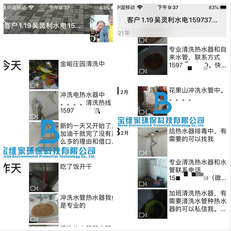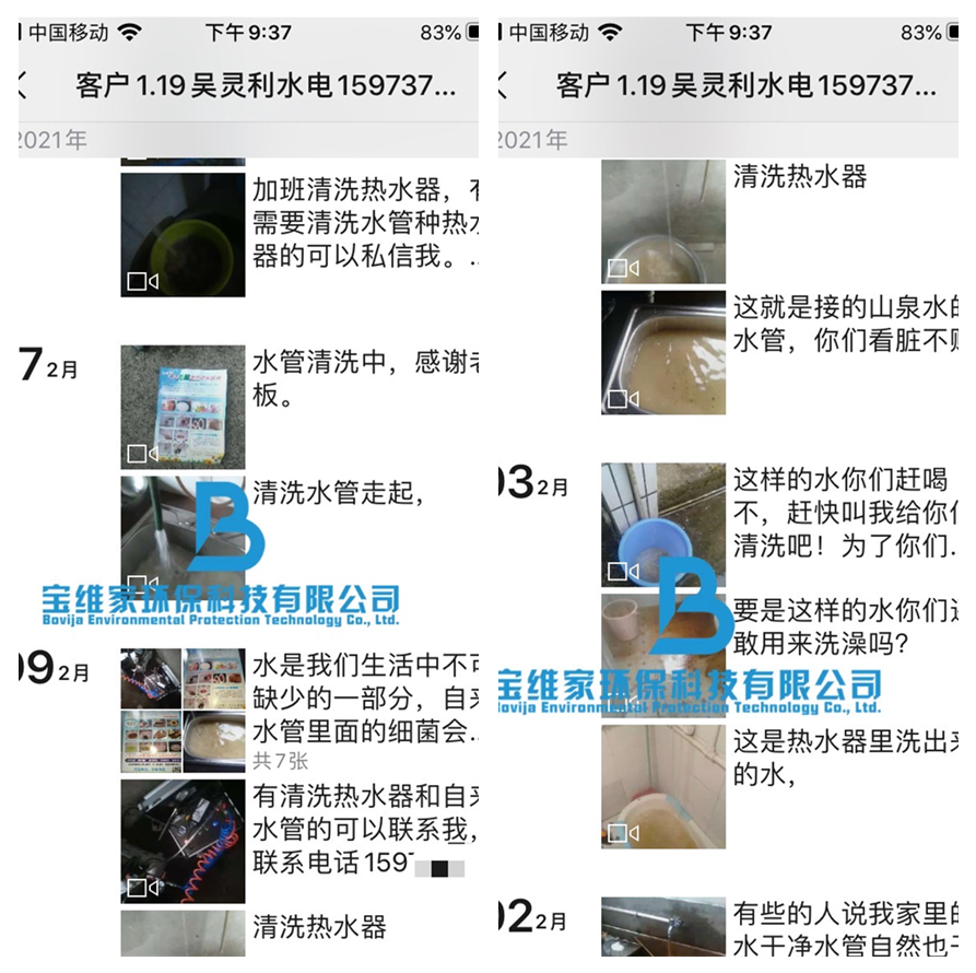 吳先生是來自湖南水管清洗加盟商,2020年元月中下旬,一次偶然的機(jī)會(huì),吳先生在網(wǎng)上無意間看到了水管清洗這個(gè)項(xiàng)目,因?yàn)閰窍壬綍r(shí)對(duì)于健康也是比較注重的,所以當(dāng)看到這是一個(gè)健康環(huán)保項(xiàng)目時(shí),瞬間提起了吳先生的興趣。經(jīng)過一系列地搜索和了解之后,吳先生決定加盟這個(gè)項(xiàng)目。在此之前吳先生原本是在湖南當(dāng)?shù)刈鏊姲惭b的,但是由于受到疫情的影響,吳先生想找一個(gè)適合自己又不用投入太多成本的副業(yè)來增加收入,當(dāng)了解了水管清洗這個(gè)項(xiàng)目后,吳先生決定加入這個(gè)行業(yè)。經(jīng)過一系列地對(duì)比后,吳先生選擇了加入寶維家水管清洗公司。