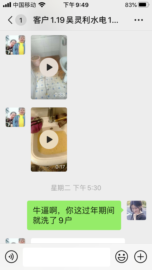 一個(gè)月不到,吳先生已經(jīng)累積了不少客戶,很多客戶洗完水管熱水器之類的后非常滿意,又提出清洗油煙機(jī),空調(diào)等家電的需求。一個(gè)月不到吳先生已經(jīng)準(zhǔn)備復(fù)購家電清洗設(shè)備了,而且現(xiàn)在吳先生也基本都是天天有單。