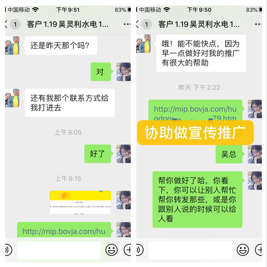 勤奮好學(xué)的吳先生在清洗單數(shù)變多的情況下向公司業(yè)務(wù)員還提出來自己的一些宣傳想法,那就是做一個(gè)專屬于自己的宣傳頁面,這樣吳先生就可以更加廣泛的宣傳和推廣自己的項(xiàng)目。在得知吳先生的想法后,公司業(yè)務(wù)員很快地將吳先生的想法告訴了推廣老師,隨后推廣老師就按照吳先生的想法做出了屬于吳先生的專屬宣傳頁面。