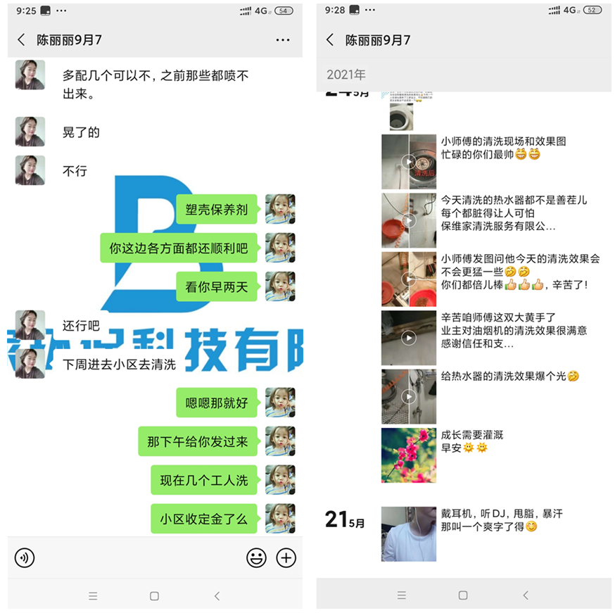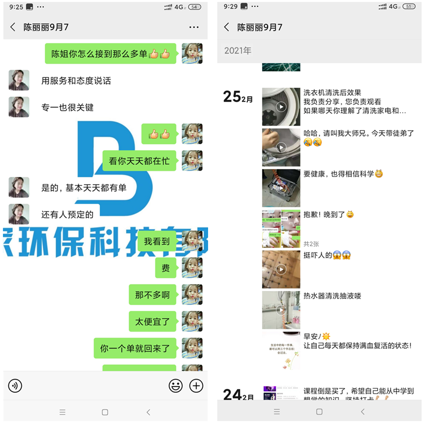 一開始還以為她是免費清洗的,后面她說一家收400。國慶期間麗姐基本天天在清洗,每天都有單子的。商務人員問她怎么那么厲害一下有那么多單,而麗姐表示其實這個項目也并沒有那么難推廣,因為公司的扶持推廣思路很好然后就是自己也肯做肯執(zhí)行加上把服務做和很多客戶也會轉介紹。