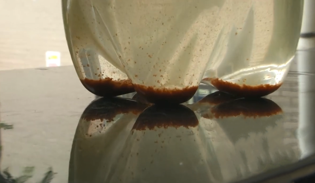 李女士告訴記者:在幾個(gè)月前就有出現(xiàn)類似情況,因?yàn)橐咔樵蚪詹艔睦霞一貋?,回來后發(fā)現(xiàn)漂浮物更加明顯了。水務(wù)人員對李女士家里的水質(zhì)進(jìn)行了檢測,發(fā)現(xiàn)水質(zhì)是合格的。檢測人員表示:李女士家住六樓排除了二次供水污染的可能性,加上鄰居也沒出現(xiàn)類似的狀況,林女士的情況,很可能是室內(nèi)水管污染了水質(zhì)。