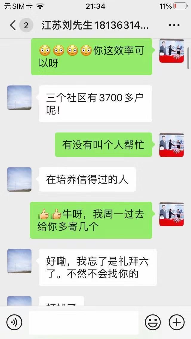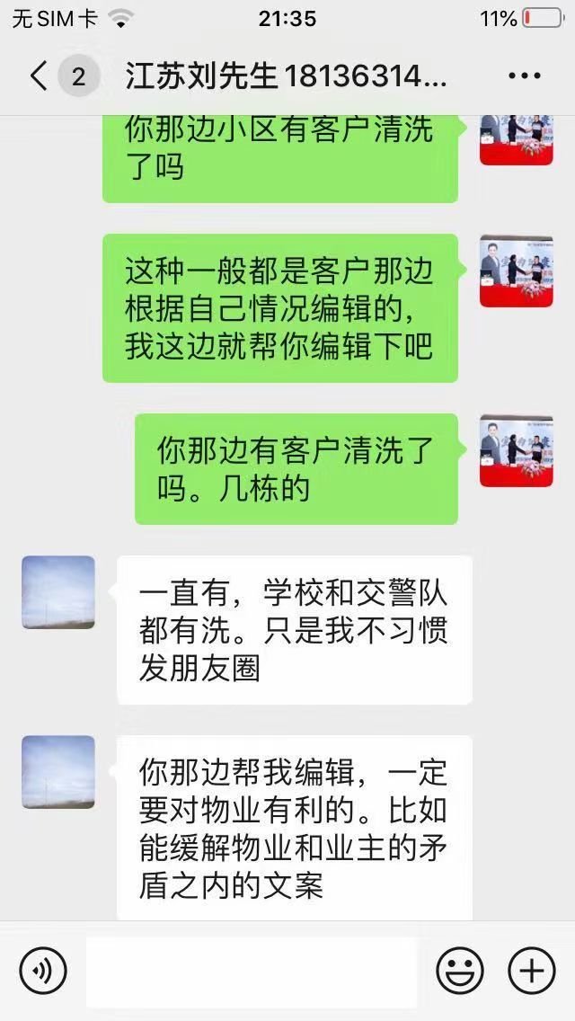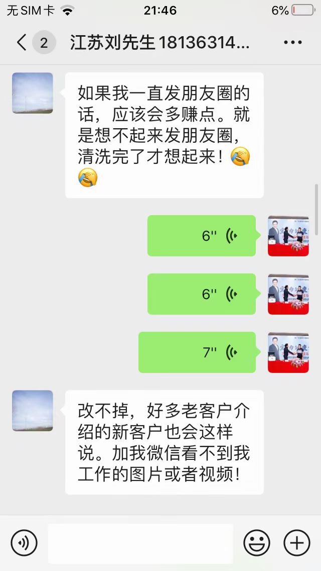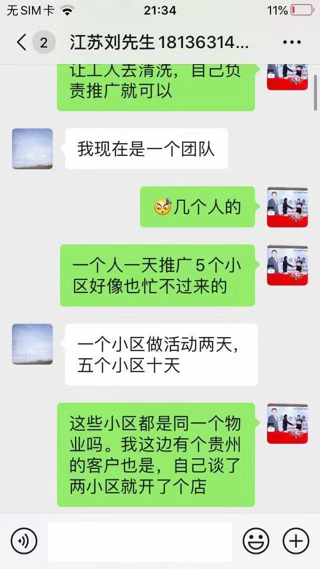 接下來每清洗一戶,劉先生就會讓清洗客戶幫忙發(fā)朋友圈幫自己宣傳一下,在如何編輯朋友圈宣傳效果會更好這一方面也積極地詢問了推廣老師并尋求幫助。