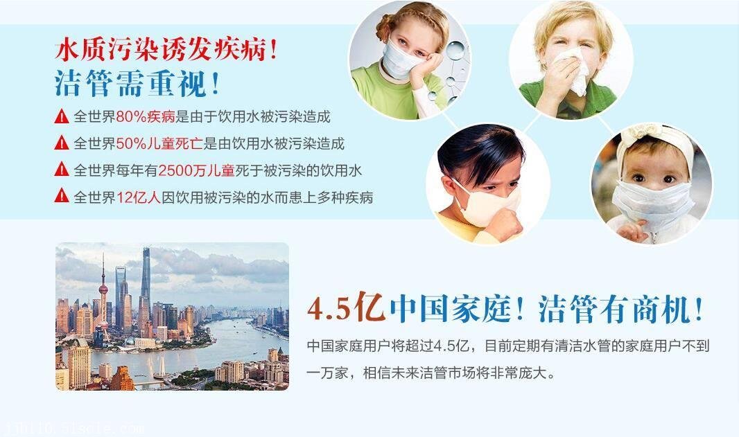 水是生命之源!全國13億人口,4億家庭,家庭水管的普及率高達(dá)90%以上,有水管的地方就有需求!