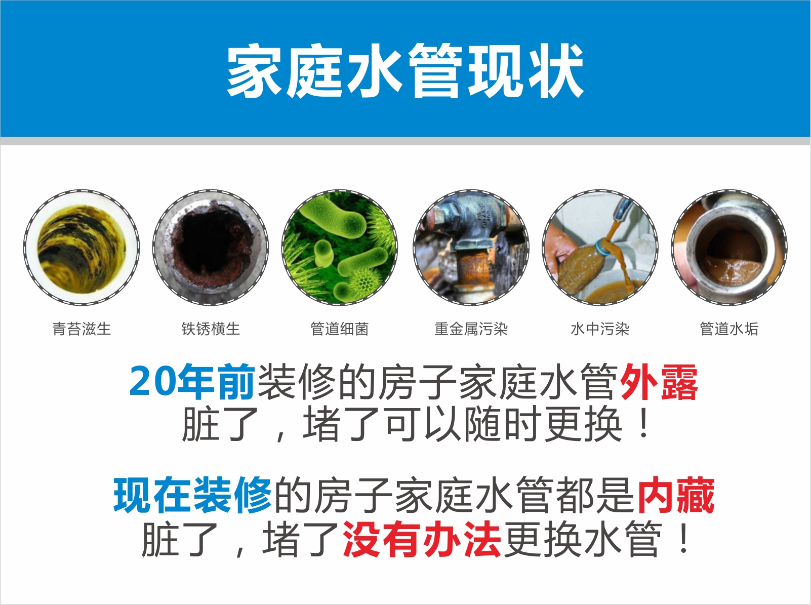 家庭管道清洗起來(lái),讓飲用水更安全!自來(lái)水能否符合正常飲用,自己是可以感受得出來(lái),家里水管水流變小、流出黃水、自來(lái)水還有有臭味、每次洗完澡都感覺(jué)干癢難受、會(huì)過(guò)敏,甚至流出鐵銹水、青苔、紅線蟲(chóng),那么家里的水管就需要馬上清洗了!