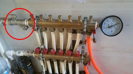 不同地區(qū)的暖氣水水質(zhì)不同,暖氣水水溫不同,暖氣管道的老化程度不同,暖氣水壓不同,管道堵塞的速度自然也不同。一般來說,更建議每年做一次簡單的濾網(wǎng)清理:在地暖分水器的旁邊,或者樓道的管井里,可以看到一個斜向下的金屬接頭,如下圖▼