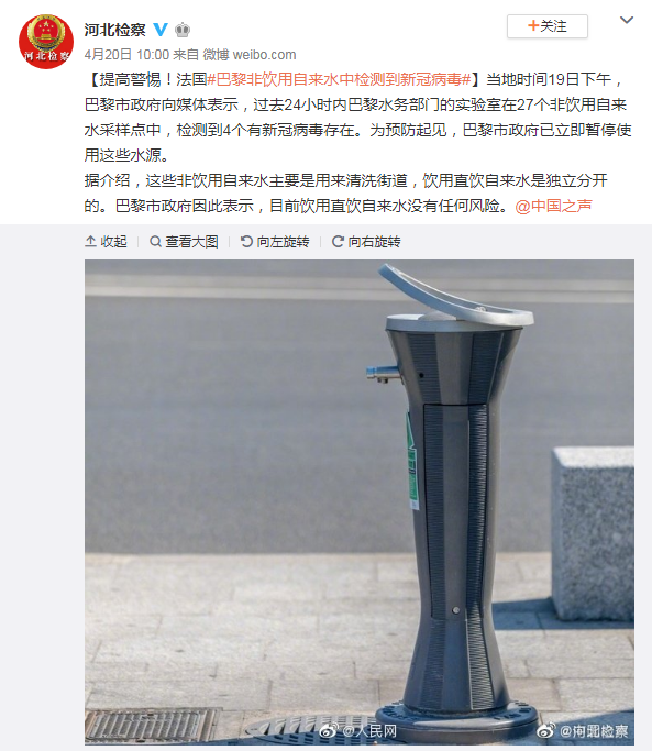 驚!定時(shí)清洗水管,法國巴黎非飲自來水中檢測到新冠病
